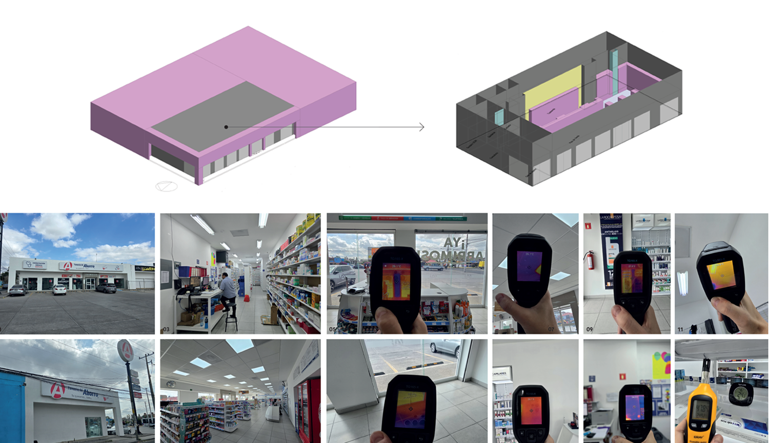 Se realiza el levantamiento de una tienda ya construida para poder realizar el estudio de consultoría completo y el análisis financiero comparativo de implementación de nuevas estrategias arquitectónicas que sean capaces de reducir los costos operativos, principalmente la reducción del uso del sistema de climatización y de la iluminación artificial.