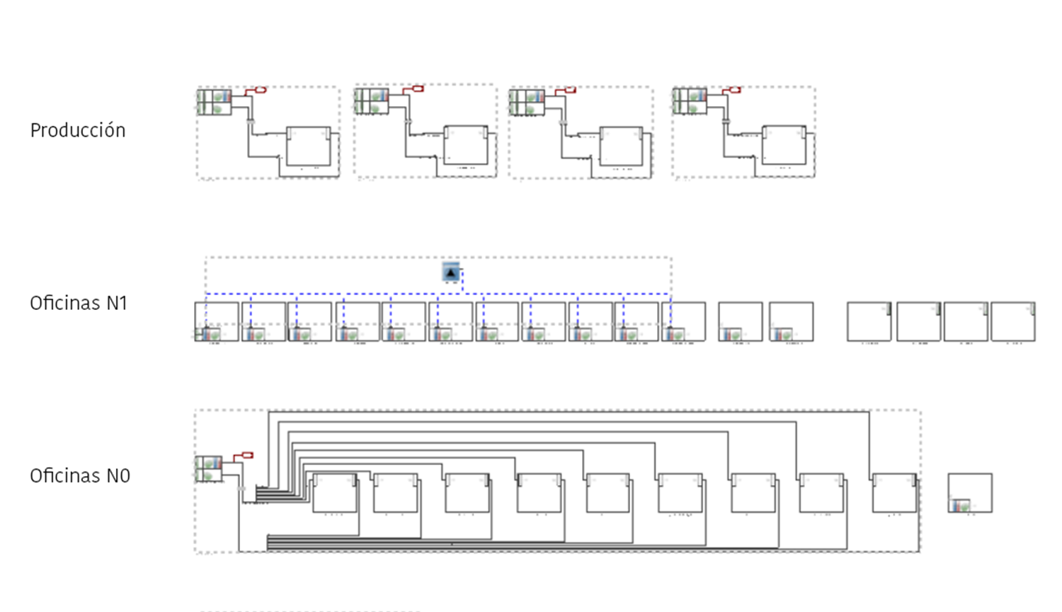 Se modela el sistema HVAC planteado por los ingenieros del proyecto, sistema bastante complejo donde se introducen ventilación mecánica, VRF, circuitos de renovación de aire, climatización con chillers, entre otros.