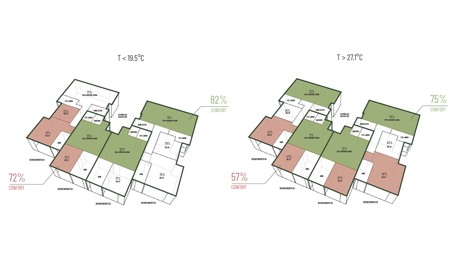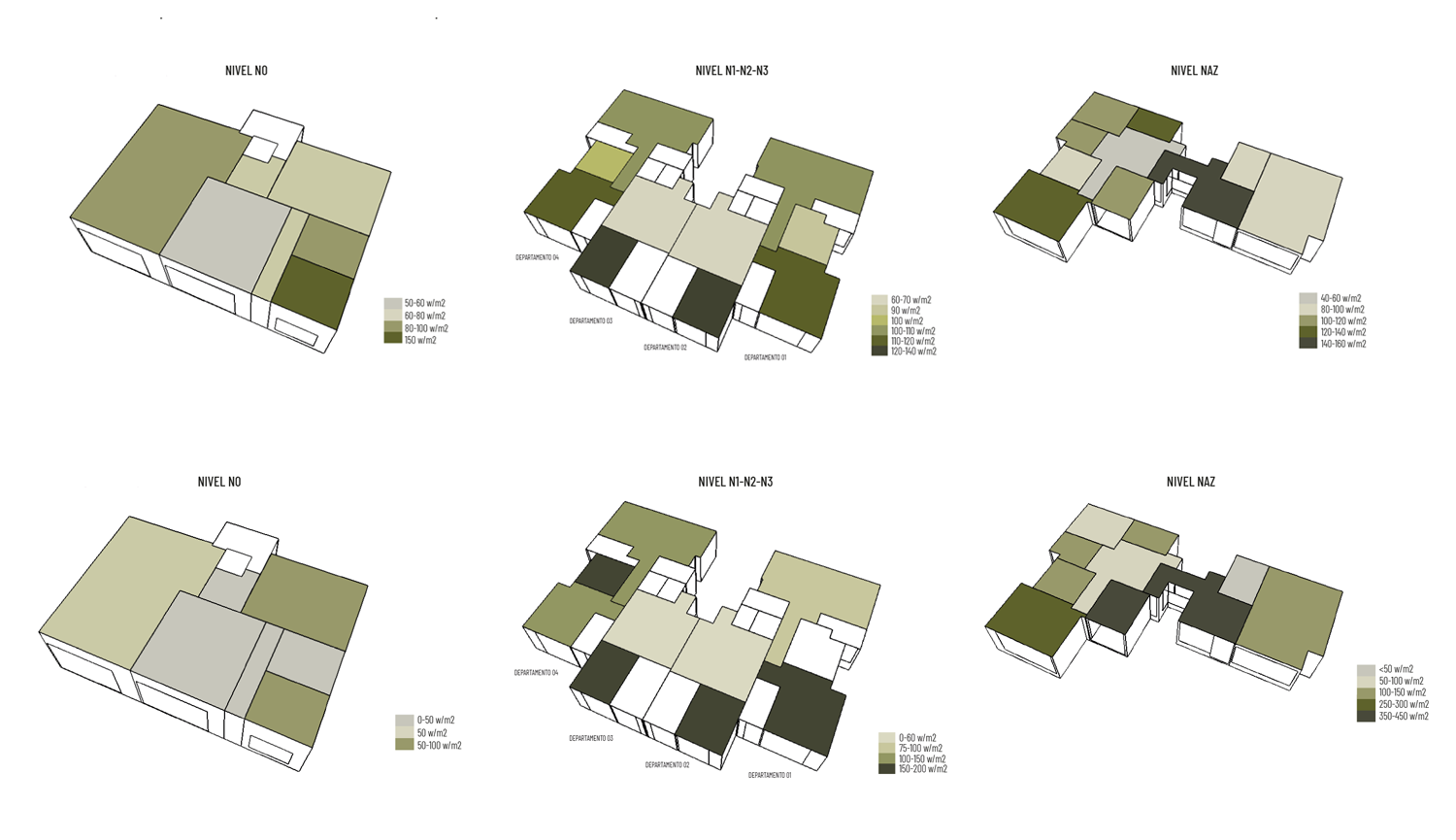 Acompañamos al despacho desde la etapa del proyecto arquitectónico realizando la consultoría energética integral: análisis del clima, estudio de soleamiento, estudio de iluminación natural, simulaciones de confort en cada uno de los espacios, y evaluación de las demandas de climatización.