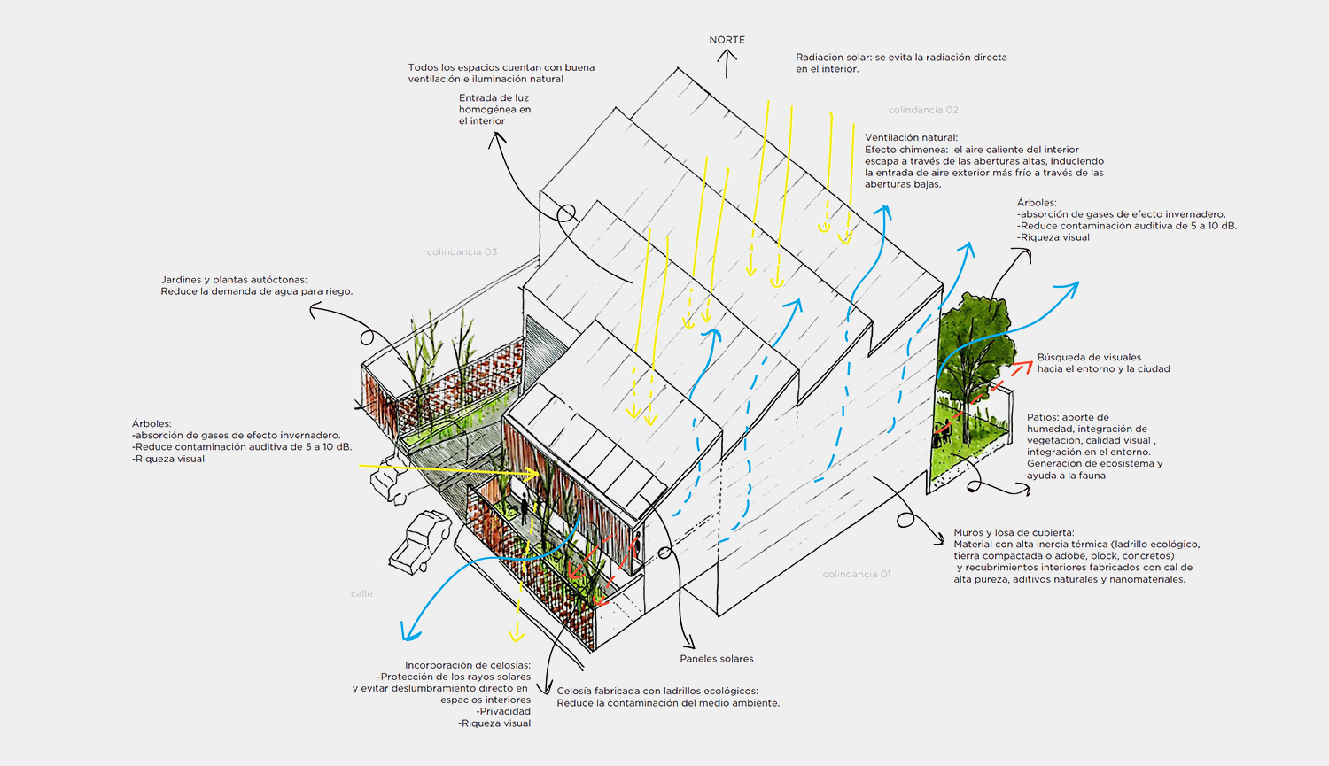 Se realizaron todos los estudios de consultoría energética completos, así como un estudio de factibilidad de ingenierías sustentables, a nivel de proyecto arquitectónico, para poder cerrar los criterios en una etapa temprana de proyecto:
