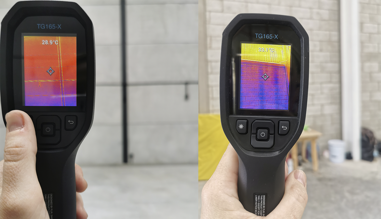 Como vemos en la foto adjunta, el muro de concreto presenta una temperatura superficial interior de 28.9 °C y el de block de 33.1 °C, una diferencia del 12%.