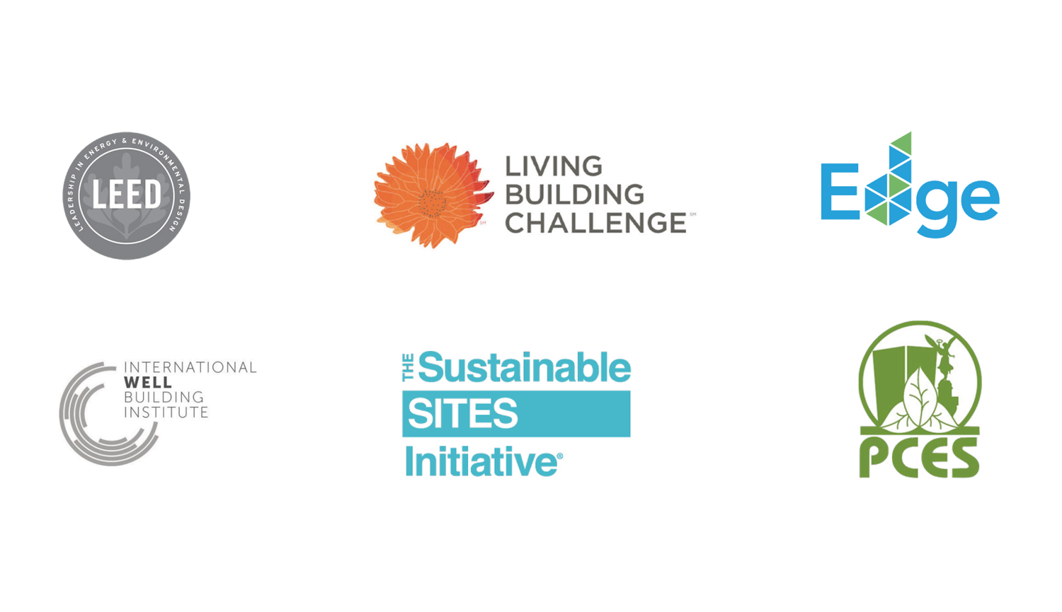 Cada proyecto se puede certificar con un sistema de puntaje que verifica el cumplimiento de la sostenibilidad. Implementación de LEED, Living Building Challenge, EDGE, WELL, SITES y PCES.