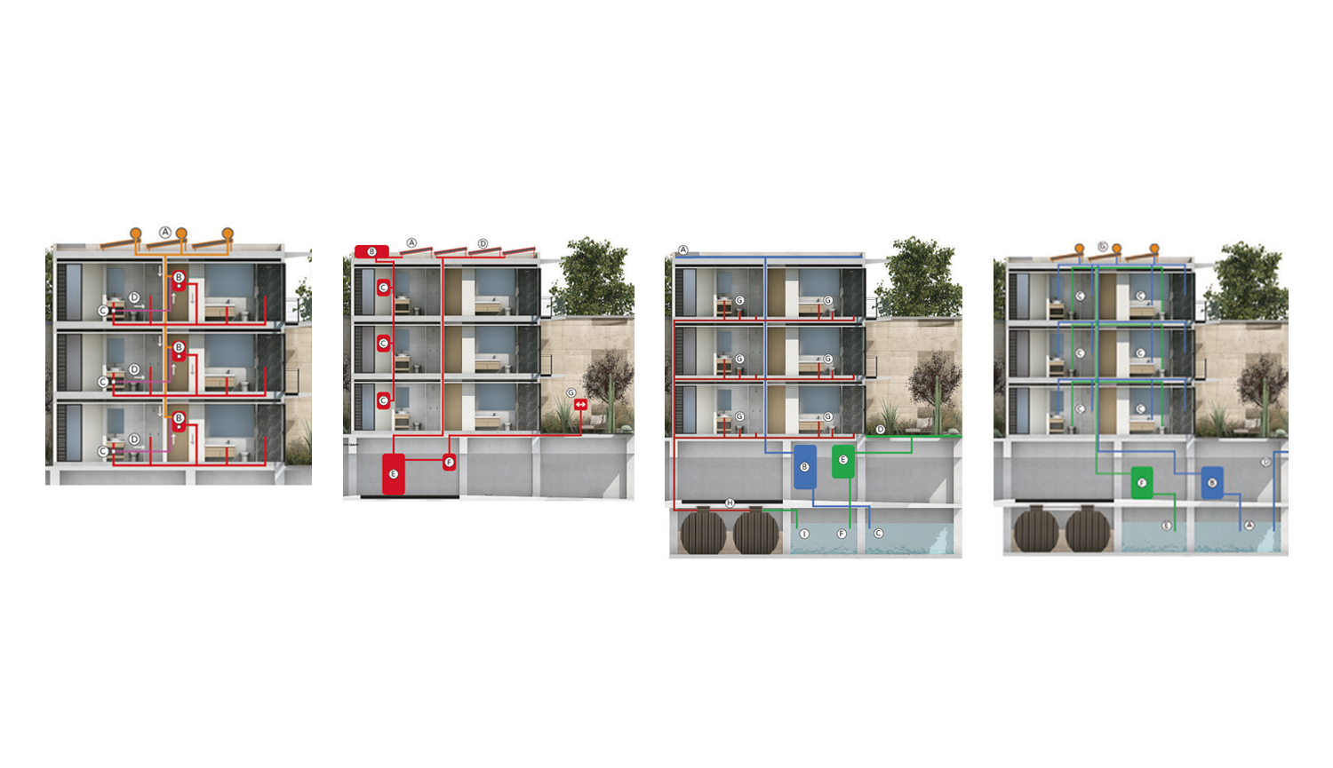 • Diseño de redes hidrosanitarias, pluviales, eléctricas, gas, red, a/c, incendio y riego